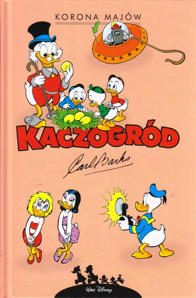 Niniejszy album zawiera komiksy Carla Barksa z roku 1963. Barks był namiętnym czytelnikiem "National Geographic" i żywo interesował się archeologią, czego wyrazem jest tytułowa opowieść "Korona Majów", w większości rozgrywająca się w ruinach prekolumbijskiego miasta na półwyspie Jukatan. W tomie znalazły się także cztery inne dłuższe historie, w tym dwie z motywem wyprawy. W opowieści "Z samego dna" kaczory udają się w morskie głębiny, a w "Złotym jaju" celem ich rejsu jest na poły baśniowa wyspa, z której Sknerus pragnie zabrać złotopióre gęsi znoszące złote jajka. Musi się jednak zmierzyć z nie byle jaką przeciwniczką - Magiką de Czar - która, podobnie jak w "Walce o monetę", wykorzystuje przeciwko niemu całą swoją magiczną moc. Na dodatek pomagają jej Bracia Be, sprawiający kłopoty Sknerusowi także w komiksie "Lepkie pieniądze". Tymczasem w nieco krótszych, dziesięciostronicowych opowieściach Donald - kaczor orkiestra - zwiedza Europę, kupuje ranczo, ujeżdża słonia, zostaje mistrzem fryzjerstwa, ratownikiem, kapitanem statku handlowego i pracownikiem wesołego miasteczka. A każda z tych przygód okraszona jest szczodrą dawką humoru charakterystycznego dla Carla Barksa. "Kaczogród" to kolekcja uwielbianych klasycznych komiksów, napisanych i narysowanych przez Carla Barksa w latach 1943-1972. Komiksy są prezentowane w kolejności chronologicznej. To prawdziwy skarb dla fanów!