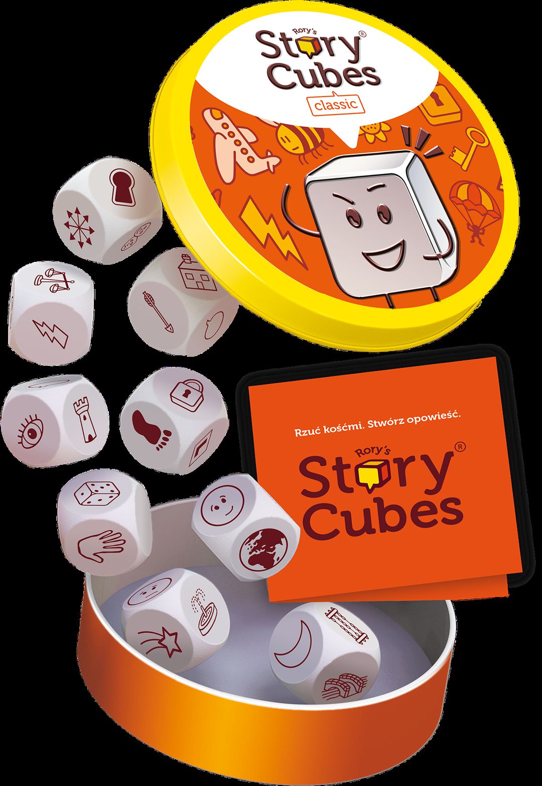Story Cubes to dziewięć ładnie wykonanych, sześciennych kostek, z których każda zawiera na ściankach odmienny zestaw ilustracji. Rzuć wszystkimi dziewięcioma kostkami. Rozpocznij swoje opowiadanie od "Dawno, dawno temu..." lub jeśli wolisz "Pewnego razu...". Następnie opowiedz historię w oparciu o dziewięć obrazów, które wypadły na kostkach. Zacznij od dowolnego z nich, najlepiej od tego, który jako pierwszy przykuł twoją uwagę. Nie ma złych odpowiedzi, jedyne co cię ogranicza, to twoja własna wyobraźnia. Obudź ją w sobie i daj się jej ponieść, a fantastyczne opowieści same zrodzą się w twojej głowie!