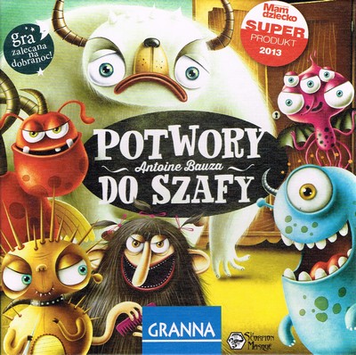 Potwory do szafy / autor Antoine Bauza ; ilustracje Maciej Szymanowicz. - Warszawa : Granna, copyright 2013. - 1 gra (20 kart potworów ; 10 żetonów zabawek ; 3 części potwora Zębogona ; 2 żetony Łowców Doskonałych ; szafa) ; pudełko 19x19x4 cm + instrukcja.