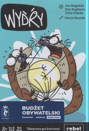 Wydry : taktyczna gra karciana / Jon Biegalski, Mar Bogdanis, Zofia Pilecka ; ilustracje Marcin Skoczek. - Gdańsk : Rebel, [2025]. - 1 gra (55 kart, 34 żetony) : karton, kolor ; w pudełku 15x11x4 cm + instrukcja.